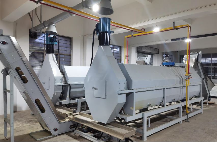 作業(yè)原理:機組配置溫度、速度、光電等傳感設(shè)備,配套自動勻葉、儲料等控制機組,實現(xiàn)對產(chǎn)能計量、平衡鮮葉流量、分段控制筒壁溫度、轉(zhuǎn)速及排濕風(fēng)量等的自動控制。